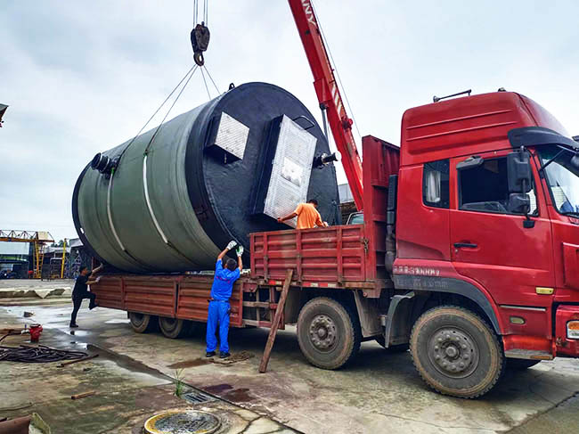 我司玻璃钢一体化泵站装车发货园区树德中学建设项目!