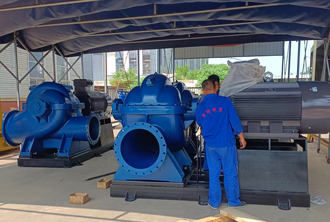 我司大流量双吸泵装车发货应用资阳九曲河防洪内涝治理!