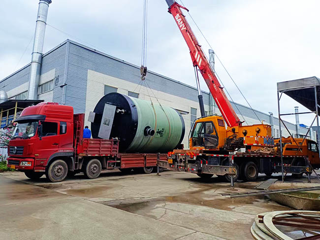 我司玻璃钢一体化泵站装车发货园区树德中学建设项目!