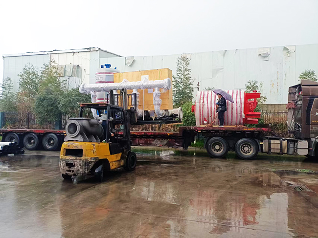 今天阴天小雨阻隔不了佰富彩主页人发货的热情!!!“东方佰富彩主页”大型消防泵组发往贵州!