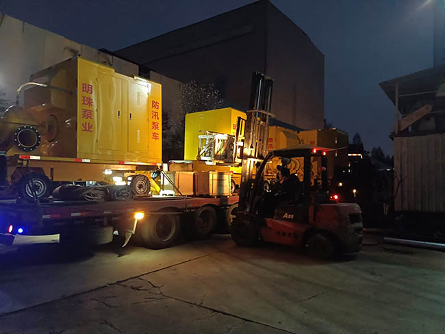 我司柴油机移动防汛泵车装车发货应用疏浚排水!